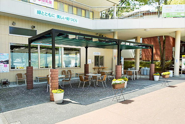 柱が邪魔にならないため、動線を妨げずテーブルや椅子の配置もしやすい設計です。狭小地や通路への設置にも最適です。