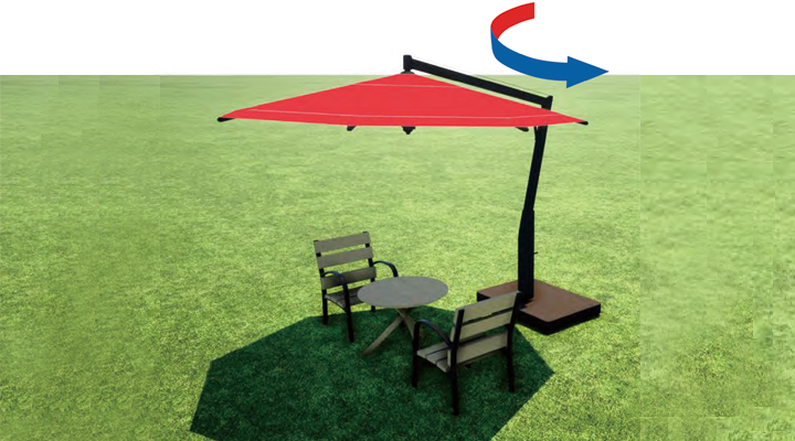 太陽に合わせてパラソルが自動追尾。いつでも快適な日かげを作り出す「太陽追尾機能」搭載の大型パラソルを開発中です。