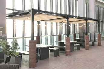 | 用途 | 商店街のアーケード、雨天時の利用も想定されるカフェ、厳しい防炎基準が求められる公共施設。 |