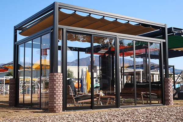自立型オーニングのリパーロなら、防寒防風対策オプションも充実。