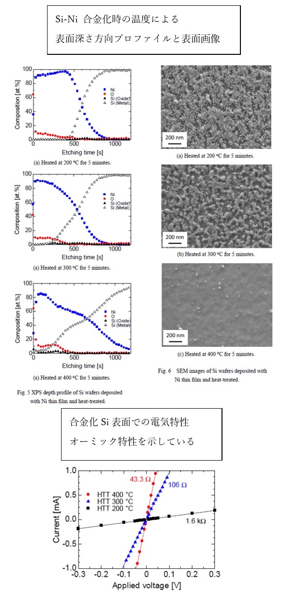 また、Si製電極を用いた場合に憂慮されるショットキー特性改善のため、Si表面の合金化を検討した。