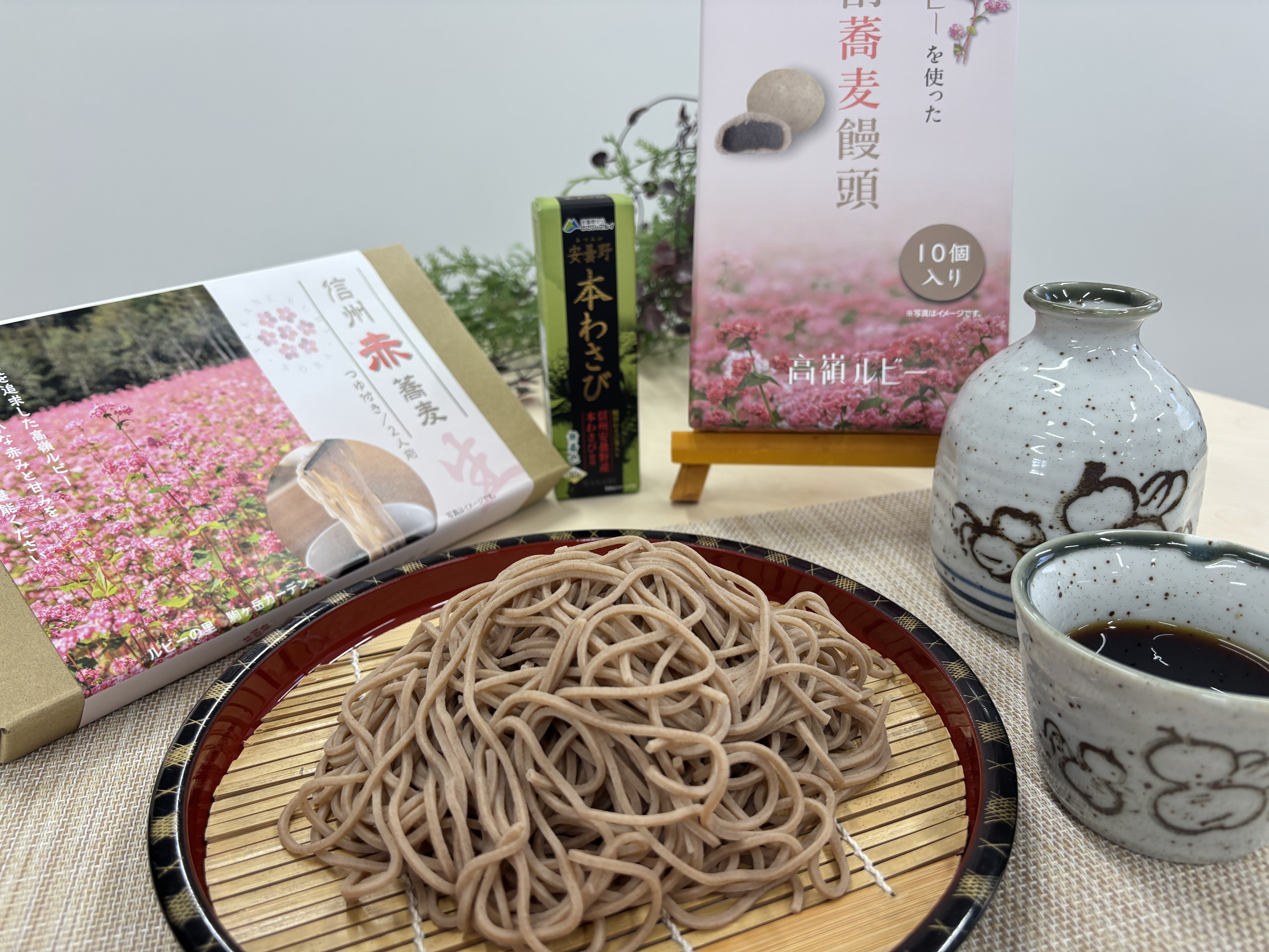 「高嶺ルビー信州蕎麦セット(セット内容:そば200g×3箱、饅頭1箱(10個入り)、本わさび1個)」  | |